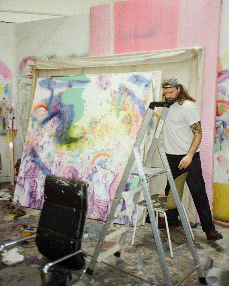 China Heights presents High End Memory, an upcoming exhibition of new works by Creed McTaggart. The scene is 3am in his garage, a threshold space between night and morning. Surfboards line the walls in deliberate arrangement. His two cats bear witness. Half finished projects accumulate around him, a loose and uncontainable archive of memory. Born in Western Australia, grandson of an artist, McTaggart’s practice is guided less by formal discipline than by instinct. A professional surfer and musician, he approaches painting as necessity rather than career. The work is not constructed but extracted, drawn from moments, encounters, and the residue of lived experience.